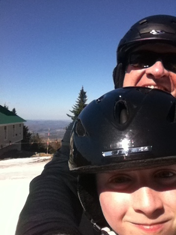 First in line and first down! I like groomed slush, it’s extra fast! We got in two runs prior to our lesson. Today we lost the kid and picked up a guy about my age. Again Bryce was great and we all picked up a few pointers. The snow is not bad considering the temp. Its 74 degrees right now.