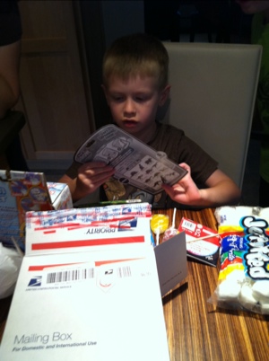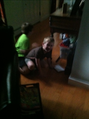 A tradition in our home is to hide the cards! Here’s JMan with a little assistance from GMan hunting for treasure.