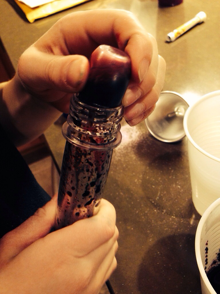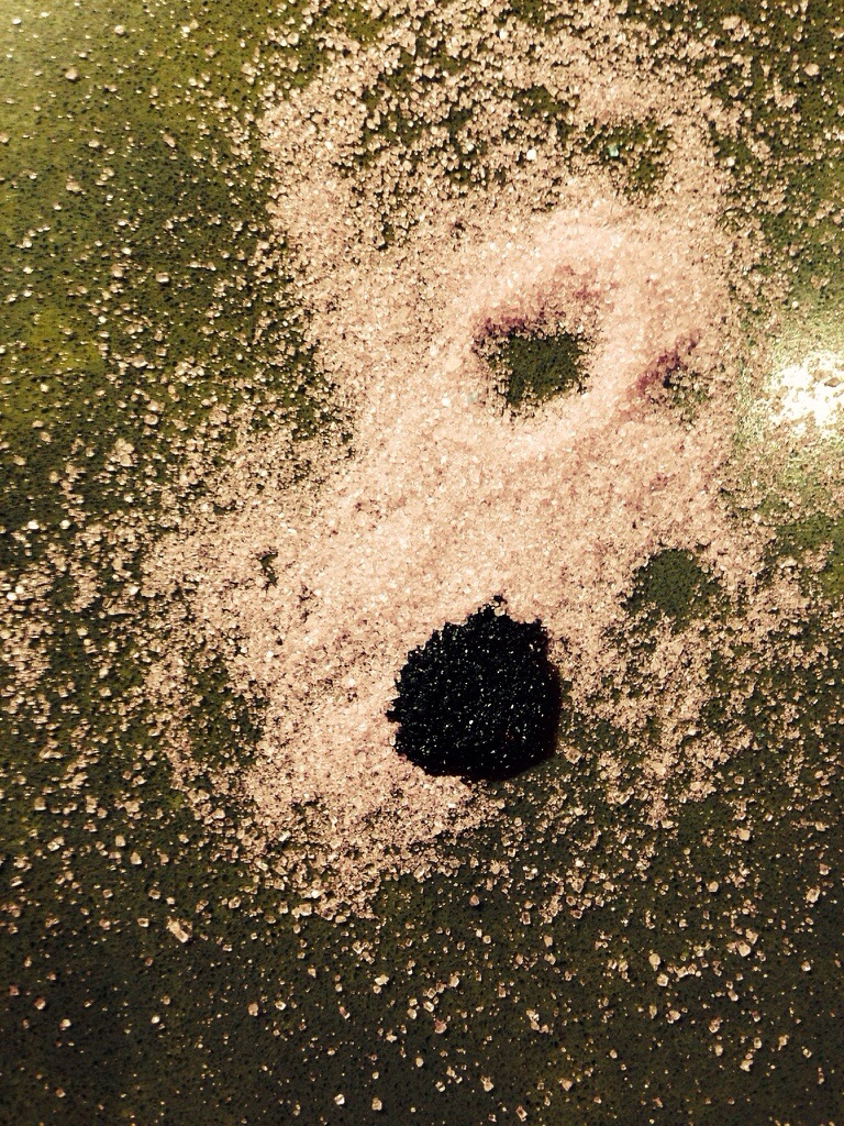 Food coloring, colored sugar, a few plastic cups and a few other odds and ends. All combined with a six year old imagination and you’ll have yourself a very nice science project…..and mess, but it’s worth it.