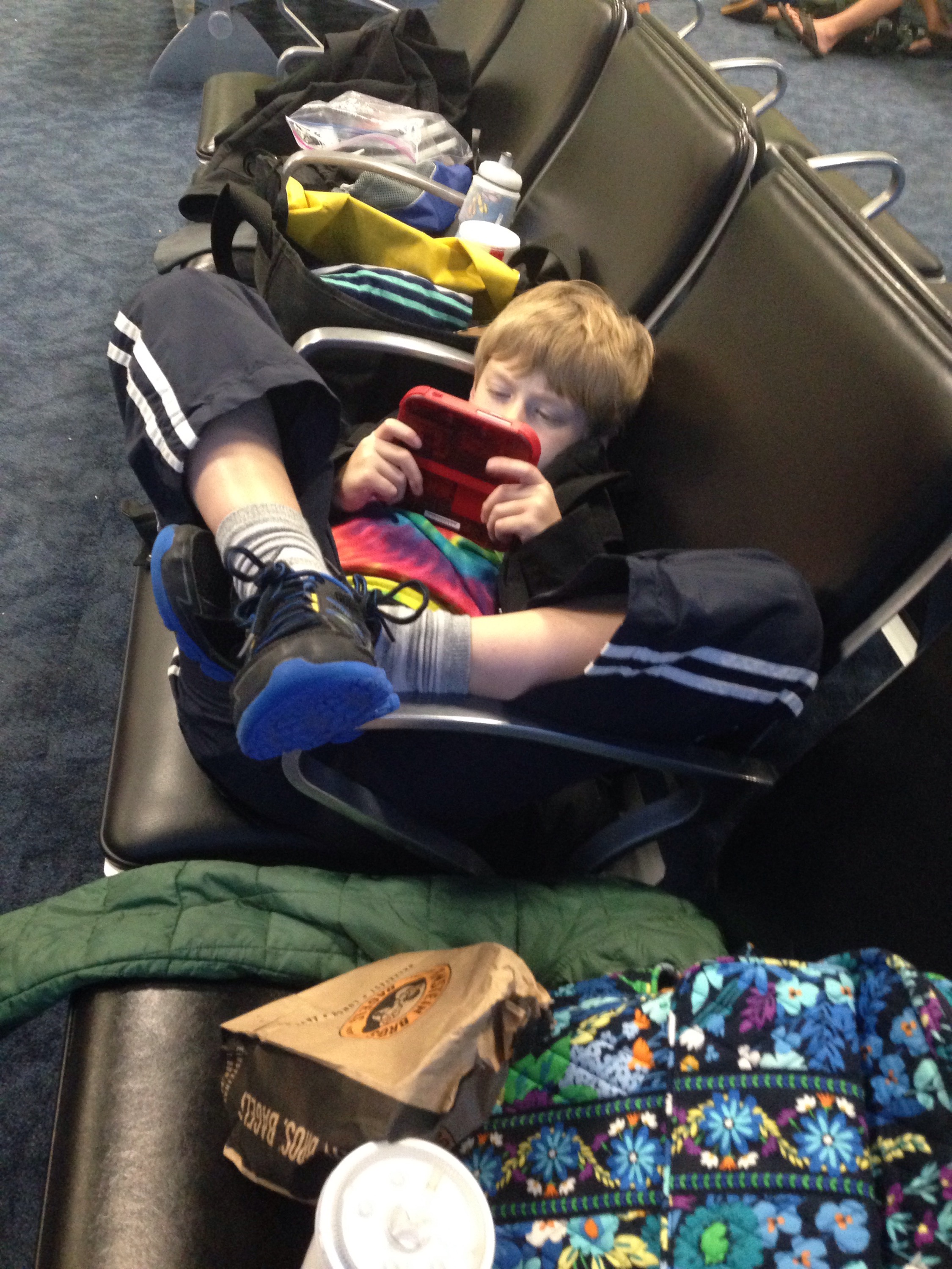 How JMan gets comfortable on airport seats.
