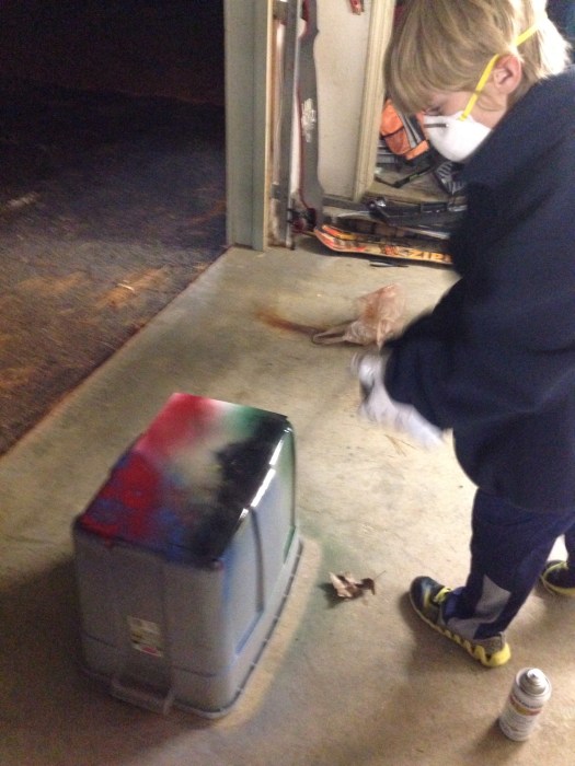 Posted on October 19, 2015October 19, 2015 by quinnjalanSpray art The boys tried some spray art in the garage this evening. Work in progress……. Finished product…… Share this: Click to share on Facebook (Opens in new window) Facebook Click to share on X (Opens in new window) X Click to email a link to a friend (Opens in new window) Email Click to print (Opens in new window) Print Like Loading... Related