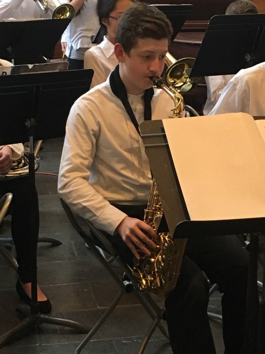 Posted on April 9, 2016 by quinnjalanJazz Band GMan and the rest of the Jazz Band played at the Fitchburg Art Museum this evening. GMan doing his solo…..with Mr B! Getting ready… Share this: Click to share on Facebook (Opens in new window) Facebook Click to share on X (Opens in new window) X Click to email a link to a friend (Opens in new window) Email Click to print (Opens in new window) Print Like Loading... Related