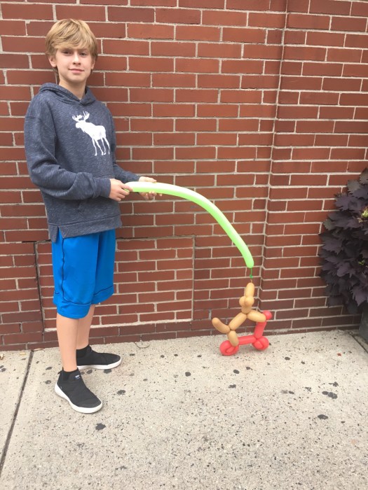JMan an his sausage dog on a skateboard balloon creation.