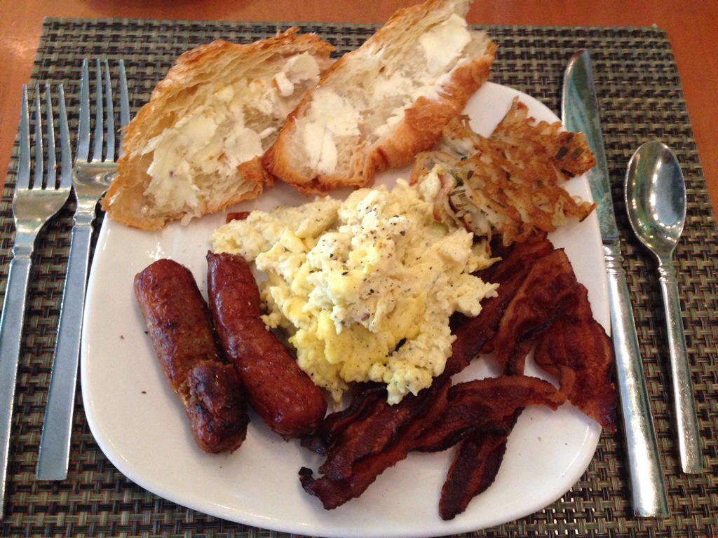 Breakfast is the most important meal of the day. Stock up on something other than carbs. Don’t forget to grab some fruit from the buffet table on the way out the door.