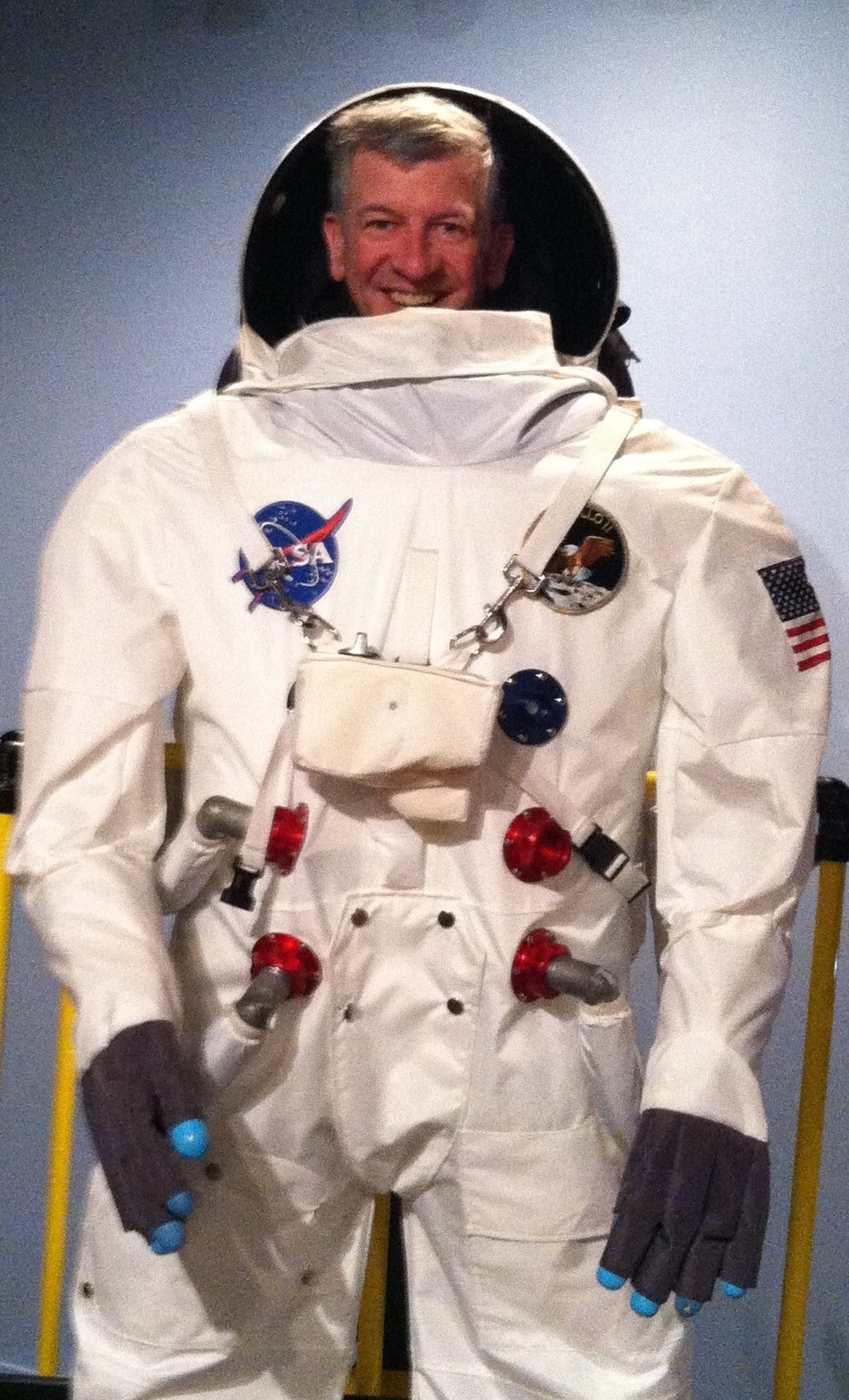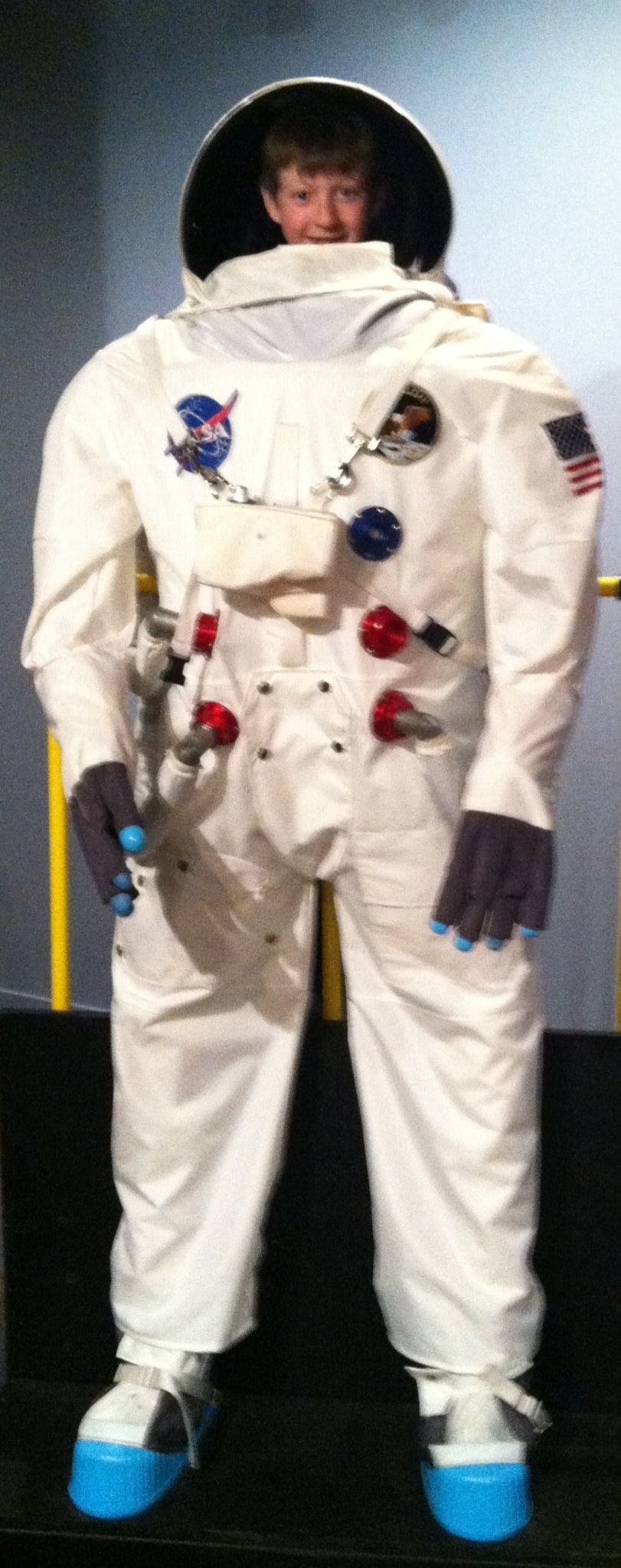 We also tried on a space suit! It took hours to get into it…..just kidding, it was one of those stand behind ones!