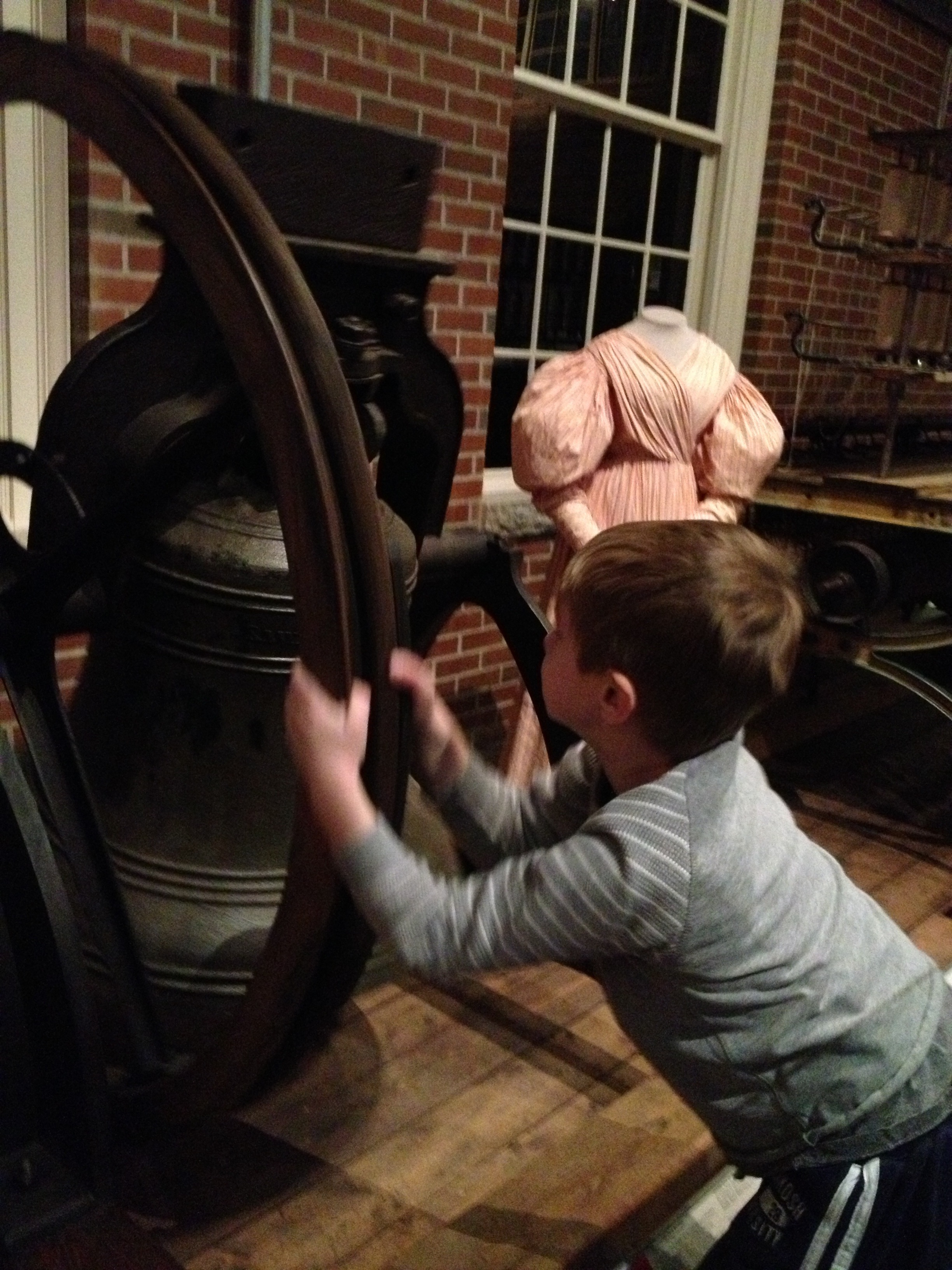 JMan ringing the work bell. It was used to call and dismiss mill worker.