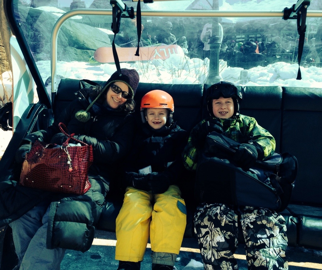 Here’s Jess and the boys on the way to top. We’ll not really. Jess is sporting a rather cool bag. New lodge side style.
