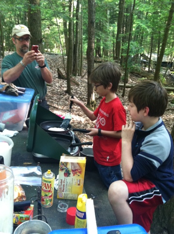 The boys manning the grill. GMan did a fine job on the bacon.