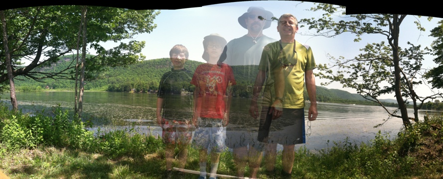 We played around with AutoStitch were we each step in and back out then moved the camera and took another photo with another person and so. Nice effect and I’m impressed how the application dealt with the scene.