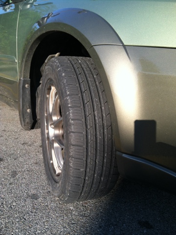 On the drive home from the office I stopped into Town Fair Tire on DW highway in Nashua. Brian was working the counter and we discussed the finer point of putting a 2006 Subu Outback up on two wheels while entering any on/off ramp! Brian fully agrees with my style of driving and we decided on a middle of the road summer tire. Not as aggressive as the last set, but V rated tires would be wasted on a family wagon.